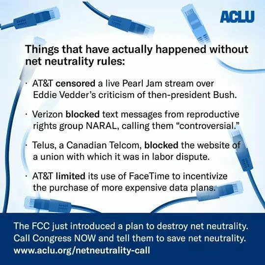 - 2013, Verizon literally stated that the only thing stopping them from favoring some content providers over other providers were the net neutrality rules in place.