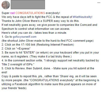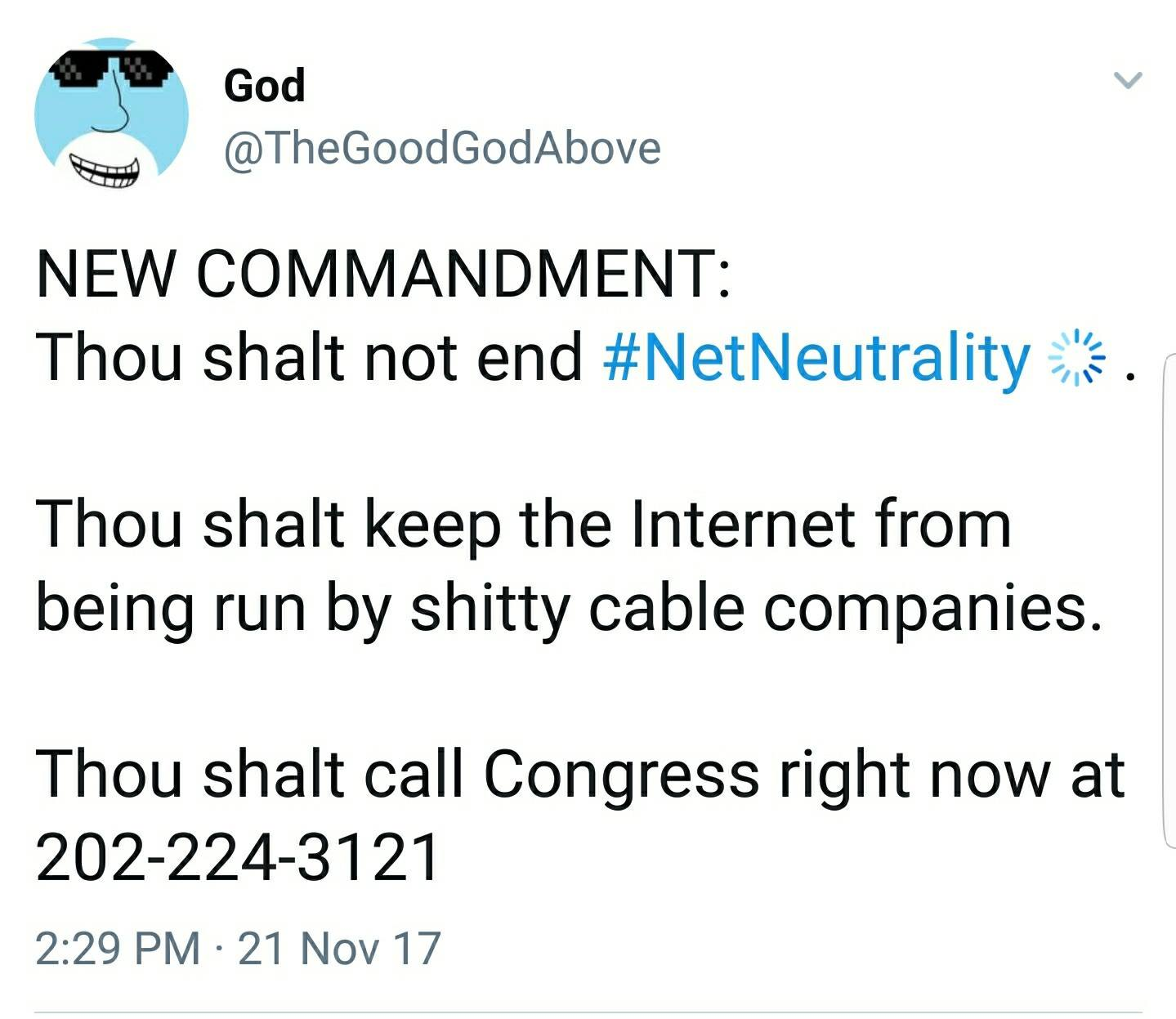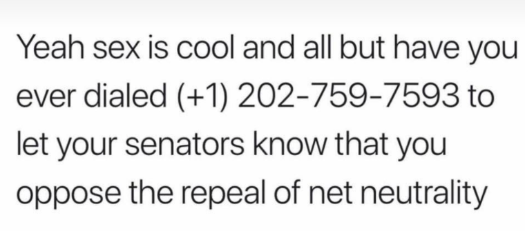 - Pledge your social media accounts to make a final post about Net Neutrality the day before the vote: https://www.thunderclap.it/projects/65242-stand-for-net-neutrality